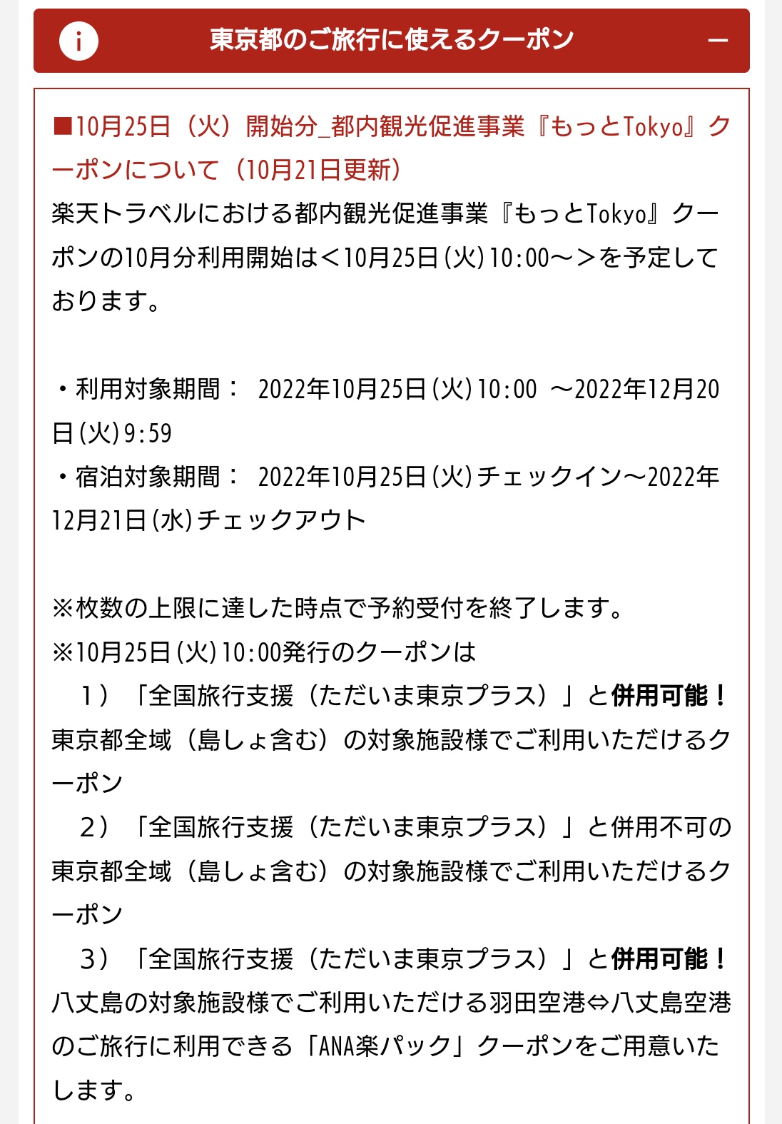 最新 東京都の全国旅行支援 ただいま東京プラス 10月20日開始 都民割もっとtokyo併用可